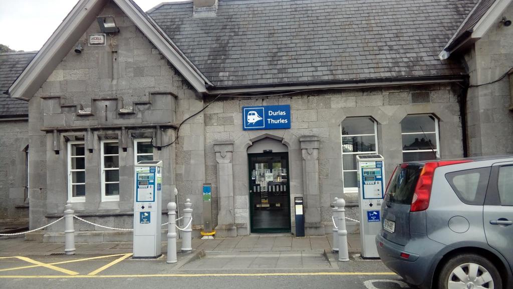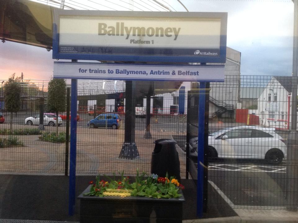 The signage at the railway station. I took the train back to Dublin.