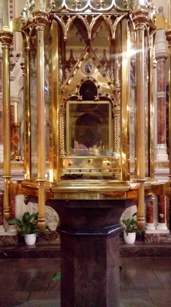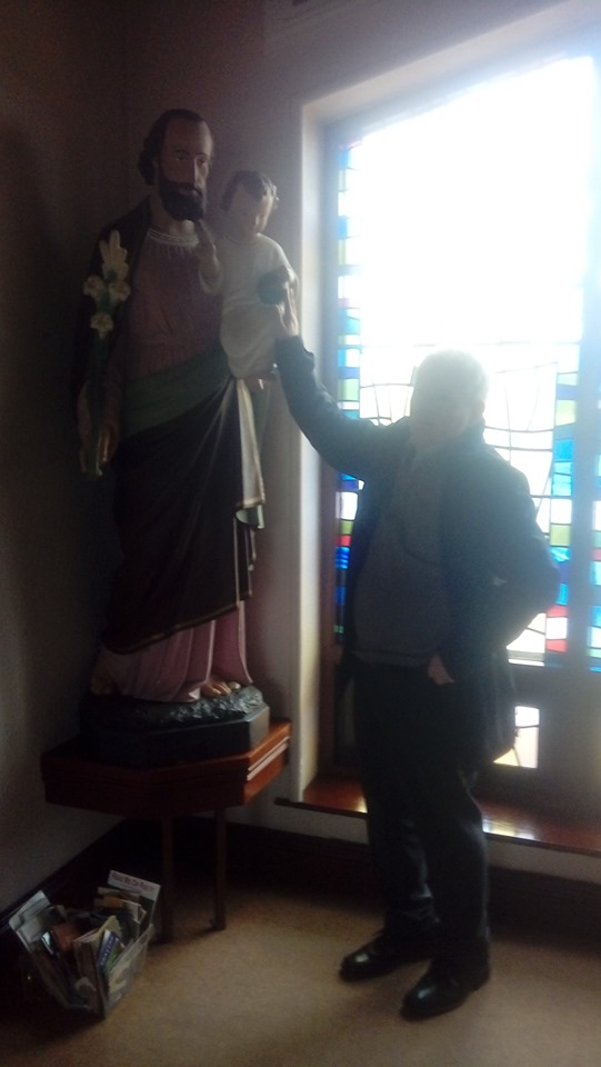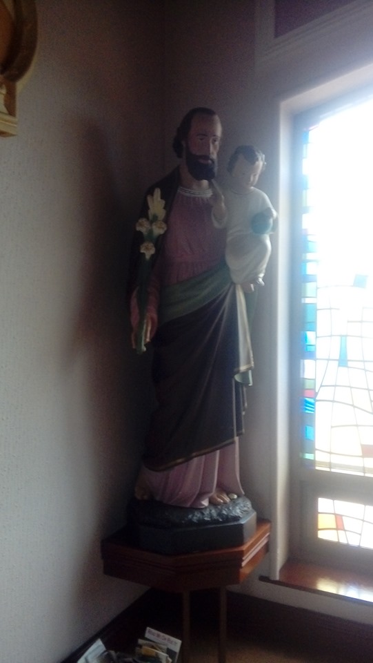 The church furniture includes St Joseph holding Baby Jesus. And Baby Jesus is holding the “whole world in his hands” as the song says. But to a toddler in a stroller circa 1954, Baby Jesus is holding a ball and …for many years those loving people who took me there teased me with the memory that I cried because I wanted Baby Jesus to let me play with him.